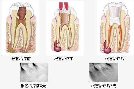 “根管治疗”是针对牙齿、牙髓、根尖病变的一个治疗过程。具体来讲,牙齿根管治疗是通过清除根管内的坏死物质,进行适当的消毒,充填根管,以去除根管内容物对根尖周围组织的不良刺激,防止发生根尖周病变或促进根尖周病变愈合的一种治疗方法。