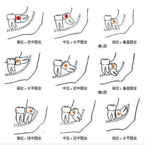 位置不正(阻生智齿)。这种时候一般需要牙医拍片得知,但患者会感觉到不适或牙疼。更有甚者由于空间不足,智齿生长过程中挤压邻牙,使得原本一口整齐的牙,变的歪歪扭扭。