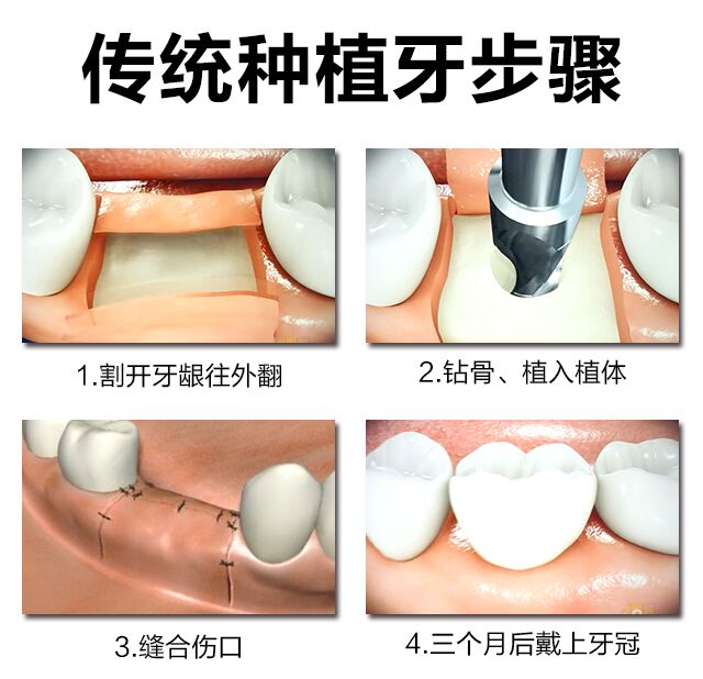 刘阿姨今年61岁了,上排牙齿全掉光了,如果按上面的种植方法,必须大面积割开牙龈往外翻,手术差不多要2个多小时,势必会有大量的出血,刘阿姨担心身体吃不消。
